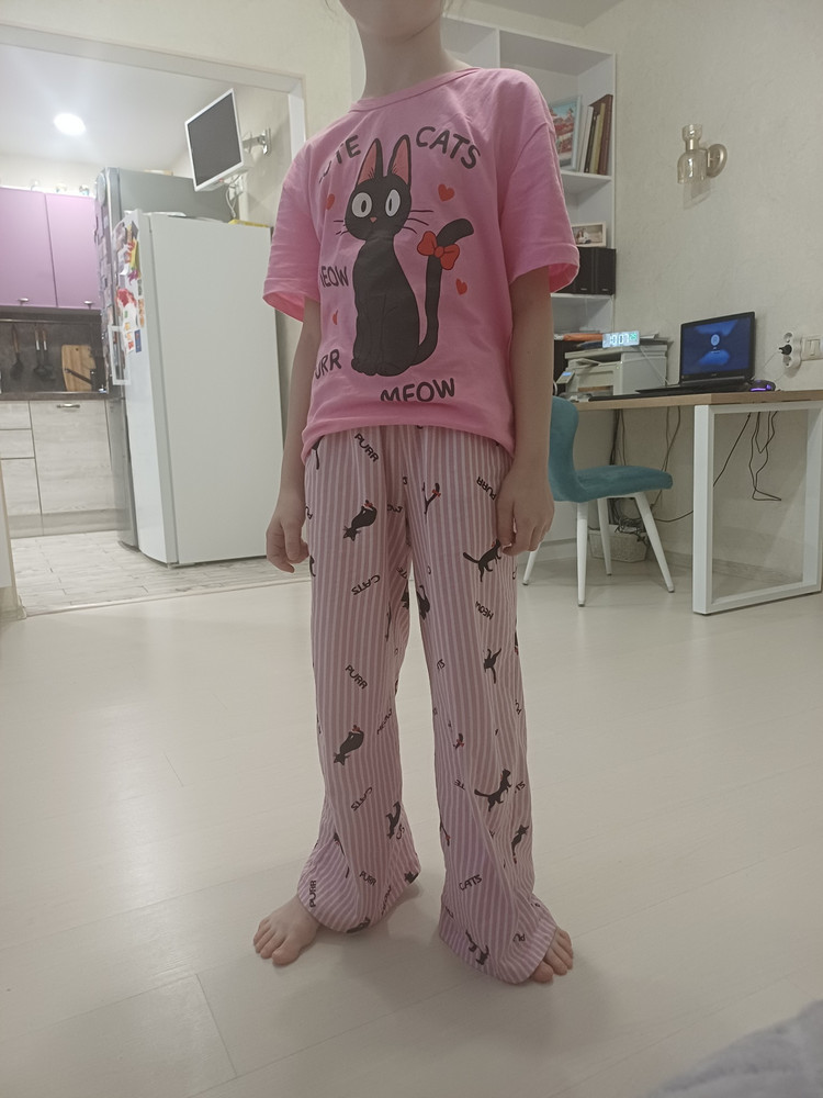 Трикотажная пижама для девочки со штанами — комфорт и стиль для дома! Домашний костюм состоит из брюк палаццо с карманами и футболки оверсайз, что обеспечивает максимальный комфорт и свободу движений. Изготовлена из 100% хлопка, пижама мягкая, дышащая и безопасная для кожи. Брюки с высокой посадкой и свободным кроем отлично подходят для отдыха и сна. Футболка оверсайз добавляет модный акцент. Идеальный выбор вашей девочки для дома и сна!
